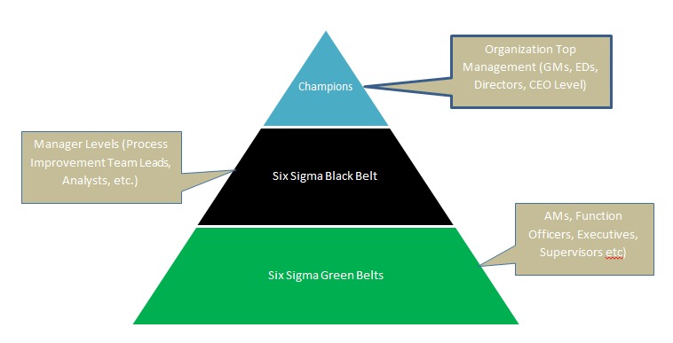 Six Sigma Training places a clear focus on getting bottom line results. Identification of the business impact is part of the methodology. No Six Sigma project is approved unless the bottom line impact has been identified. Bottom line impact gets the attention of top management for their language is money. Six Sigma is one of the most modern broad-band Quality Improvement Strategies. It builds itself on the Plan-Do-Check-Act (PDCA) framework and practically involves the entire organization into this domain. It builds the required and necessary knowledge and competence base at various levels of the organization. The top to bottom structure is laid down through a following hierarchy of Six Sigma Roles,